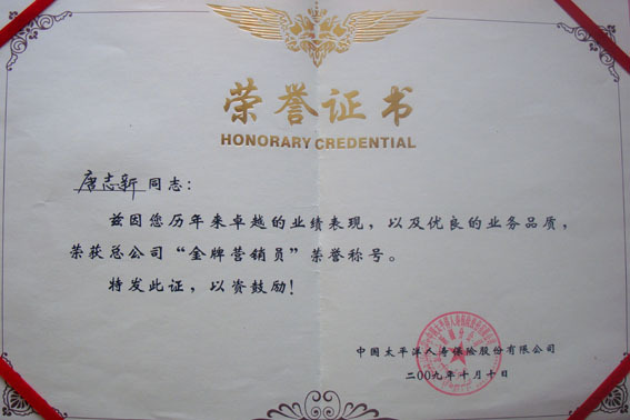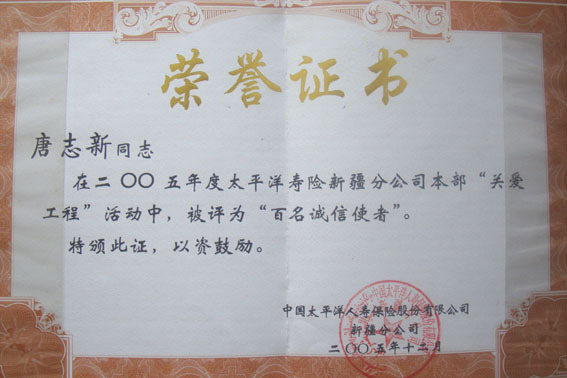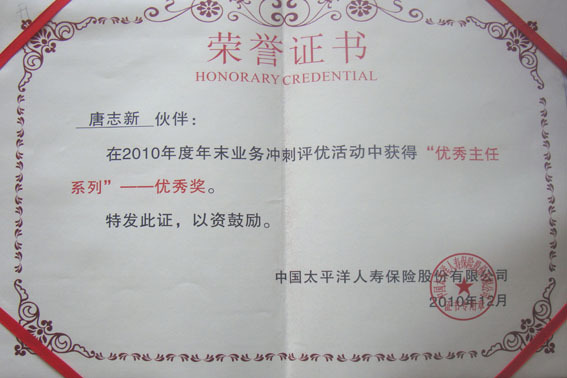 唐志新荣誉